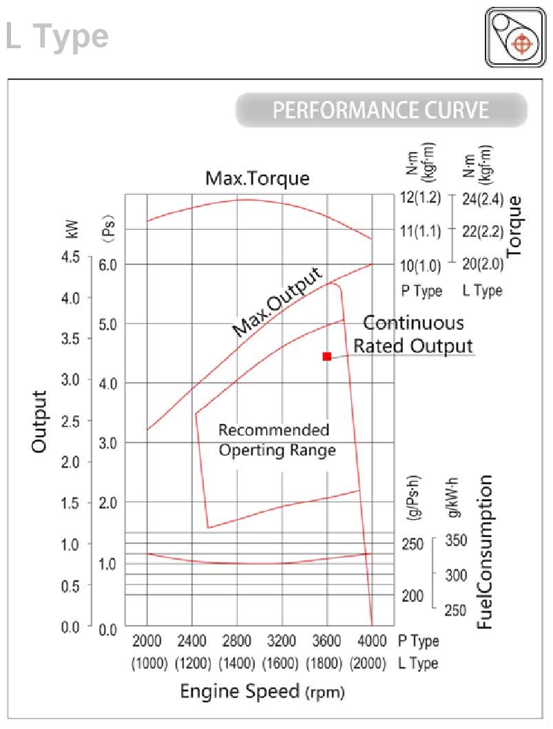 | Type | Air cooling, 4 stroke, horizontal axis, OHV | |||