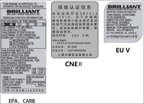 Each Brilliant engine assigned with unique serial number, it includes the information about the product warranty, correct model # for parts ordering and emission information. These remarks are listed as below. Please write down the engine serial number on the owner’s manual for future reference use.
