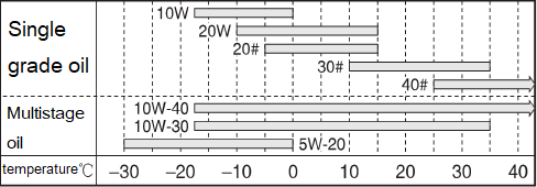 Based actual temperature condition, please use the correct lubricating engine oil for best performance of the engine.