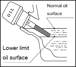 ▲ Oil level check (loosen oil gauge for correct oil level) |