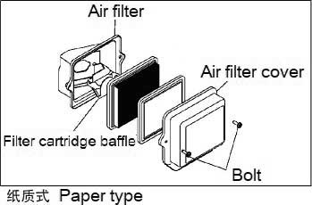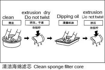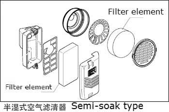 Foam element: If element is heavily clogged or over dry, wash the element with kerosene, air dry the filter, soak in engine oil and squeezing well before install. |